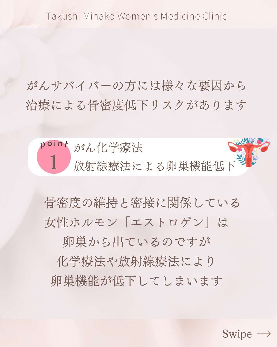 治療の過程だけでなく、「治療後の人生」がどれほど大切かを深く理解しています。 - 更年期・女性ホルモン・骨・皮膚・排尿など“女性の一生を診る”視点