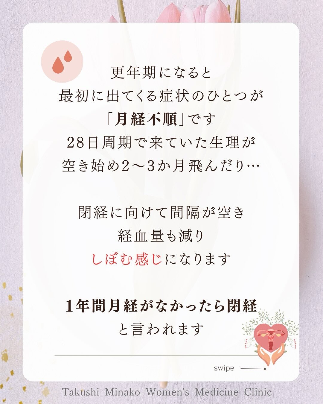 閉経したら更年期は楽になるとか、生理が順調な方には更年期はないとか、いろんな説を見聞きして、自分と当てはまらないので、不安になる方。