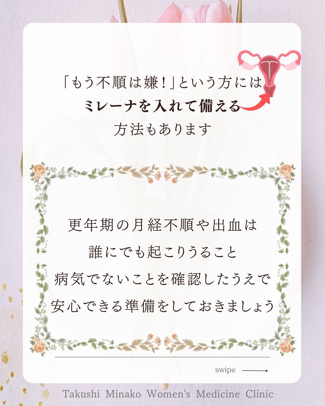時間の少ない保険診療の中でも、ある程度その方にあった医学的治療を見立てられるようにはなりましたが、目の前の辛い症状をとって終わりではなくて、医療人としてもっと深く心身両面から関わりたいと思い、このTakushi clinicの婦人科は自由診療という選択をしました。